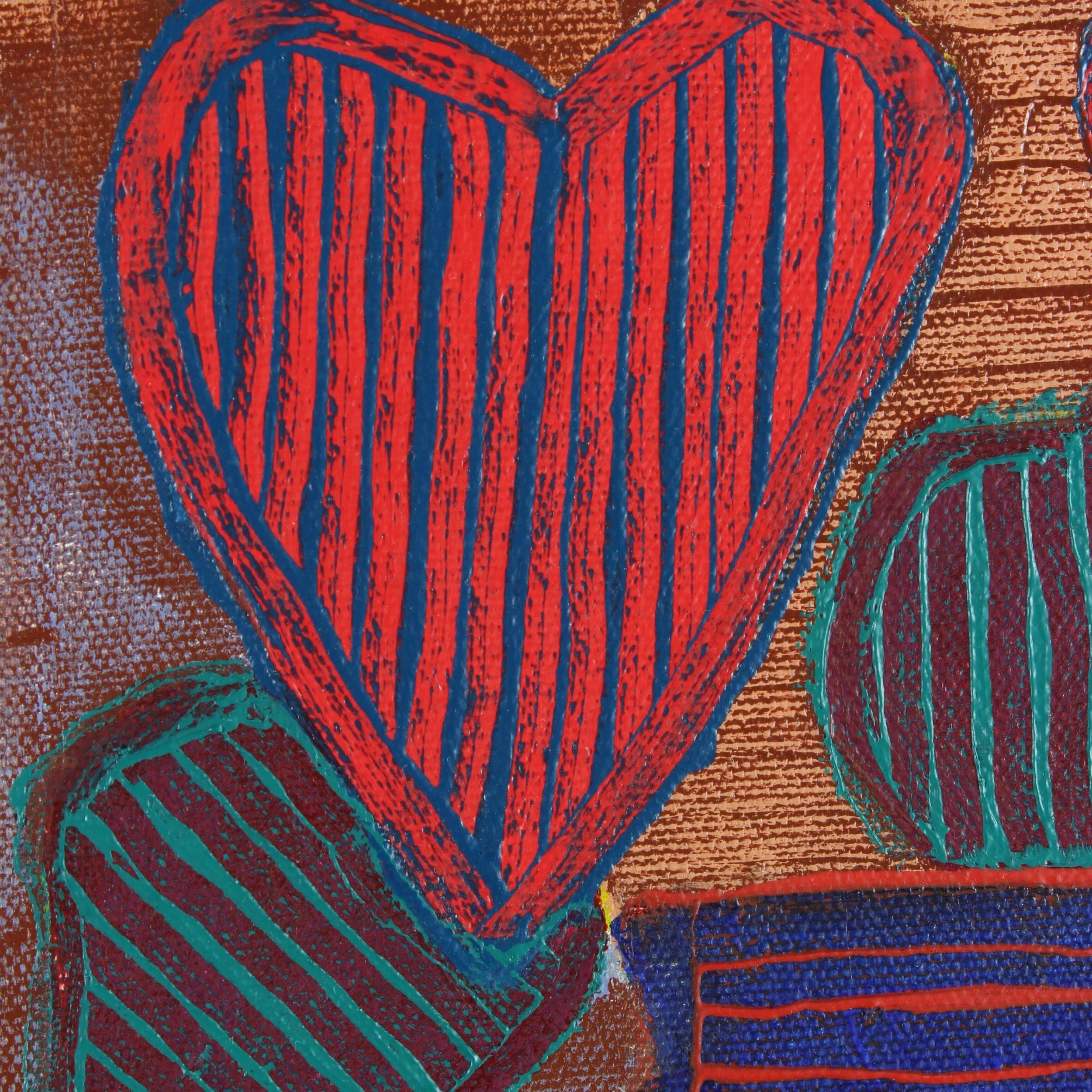 At the center of a textured world, a heart blooms in the shape of a leaf. The vase, like a chromatic womb, holds the life that expands in lines breathing color and silence. Each stroke is a vegetal memory, a scar of earth and tenderness. The surface is not just background: it is an emotional landscape, a trembling ground of greens and a wall echoing intimacy. Here, the shape of love is not a word, but pigment. A plant that pulses.