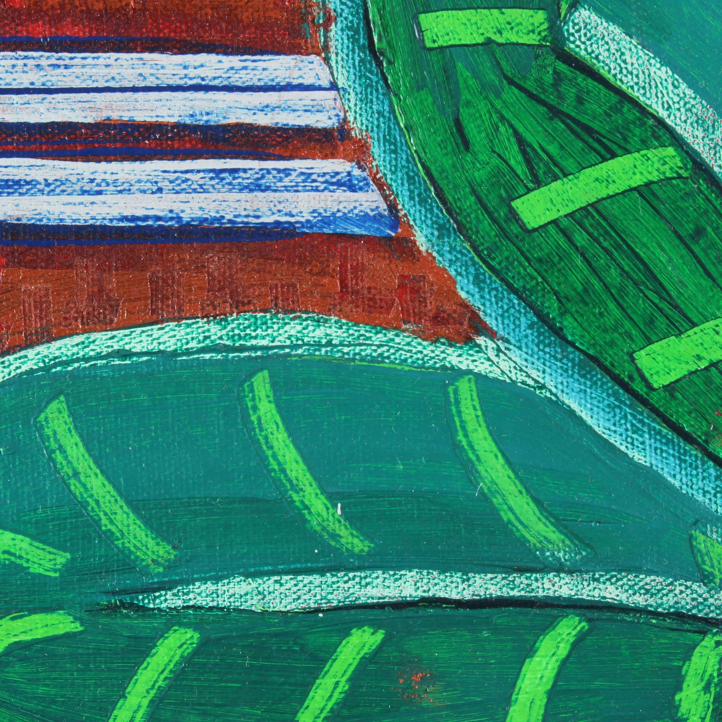 In this work, the succulent is more than a plant: it is a symbol of resilience and containment. Seen from above, it opens like a vegetal star inhabiting a world of structured forms and vibrant color. The geometric background does not confine but amplifies the presence of nature. The visual language plays with repetition as a form of meditation. The organic asserts itself subtly without drama, without grand gestures, but with a quiet strength that permeates the space. This piece speaks of the center: the intimate axis from which calm emerges. Here, observation becomes ritual, and the decorative turns contemplative.