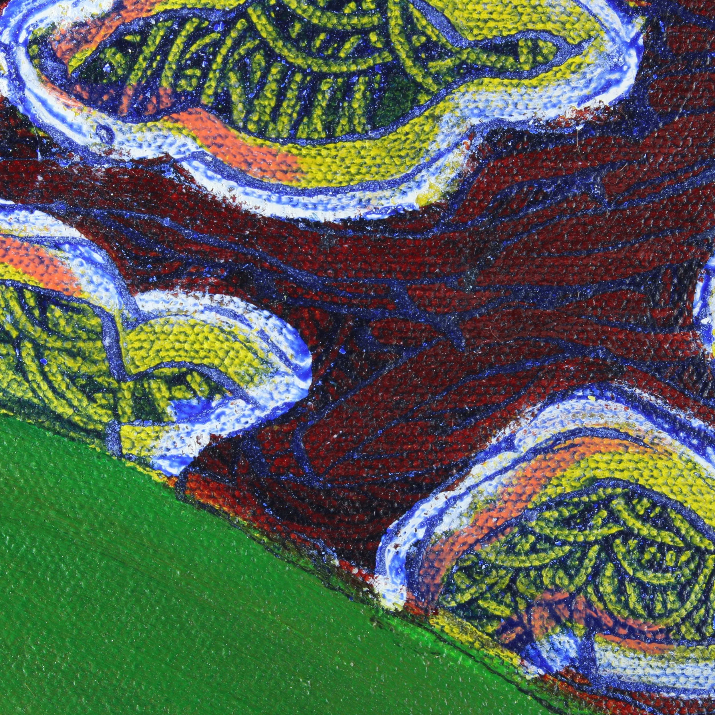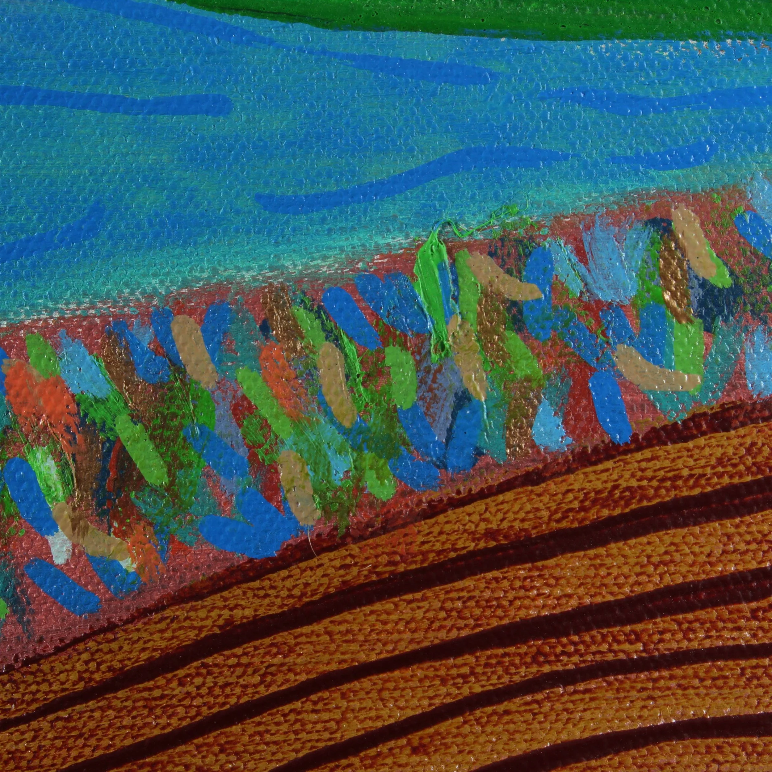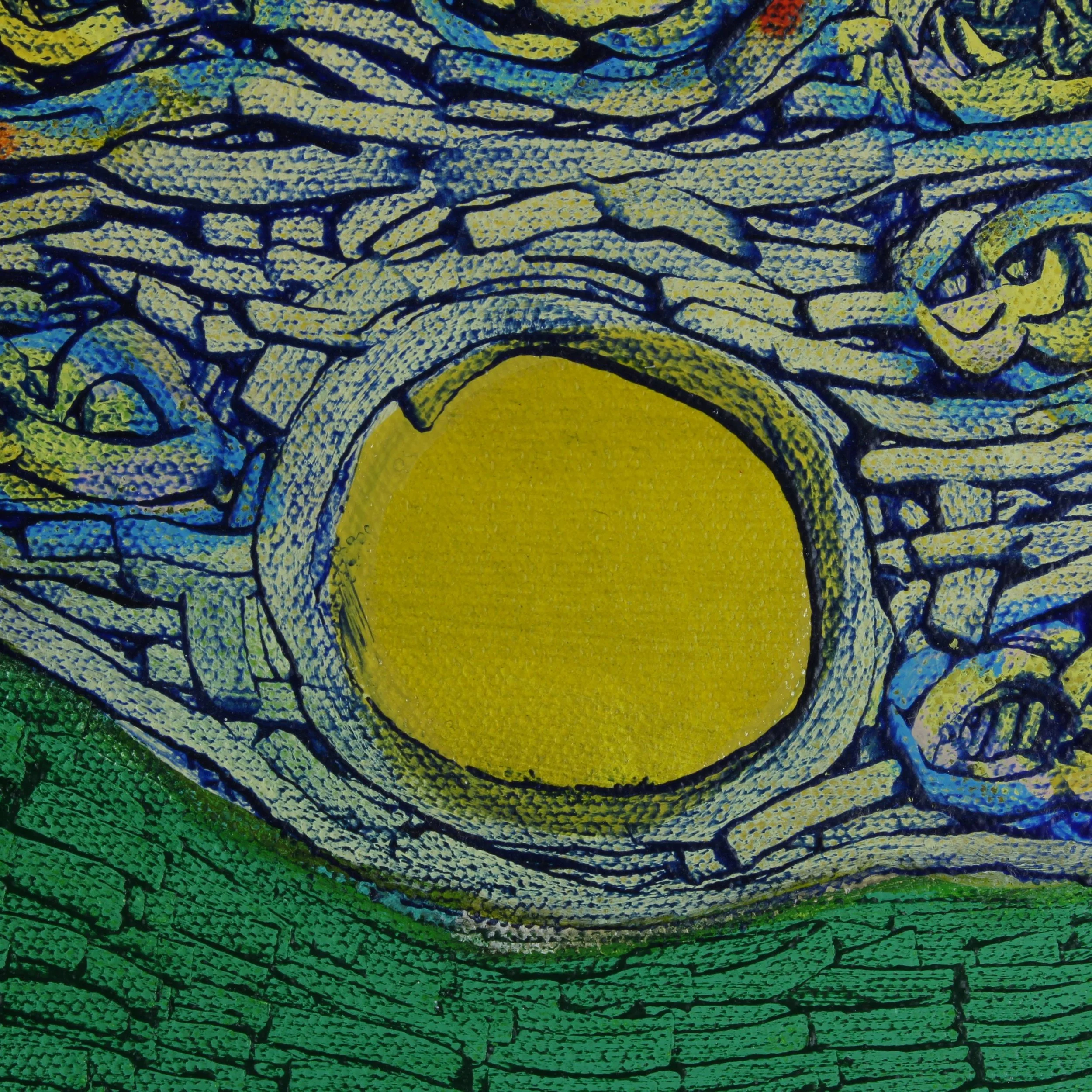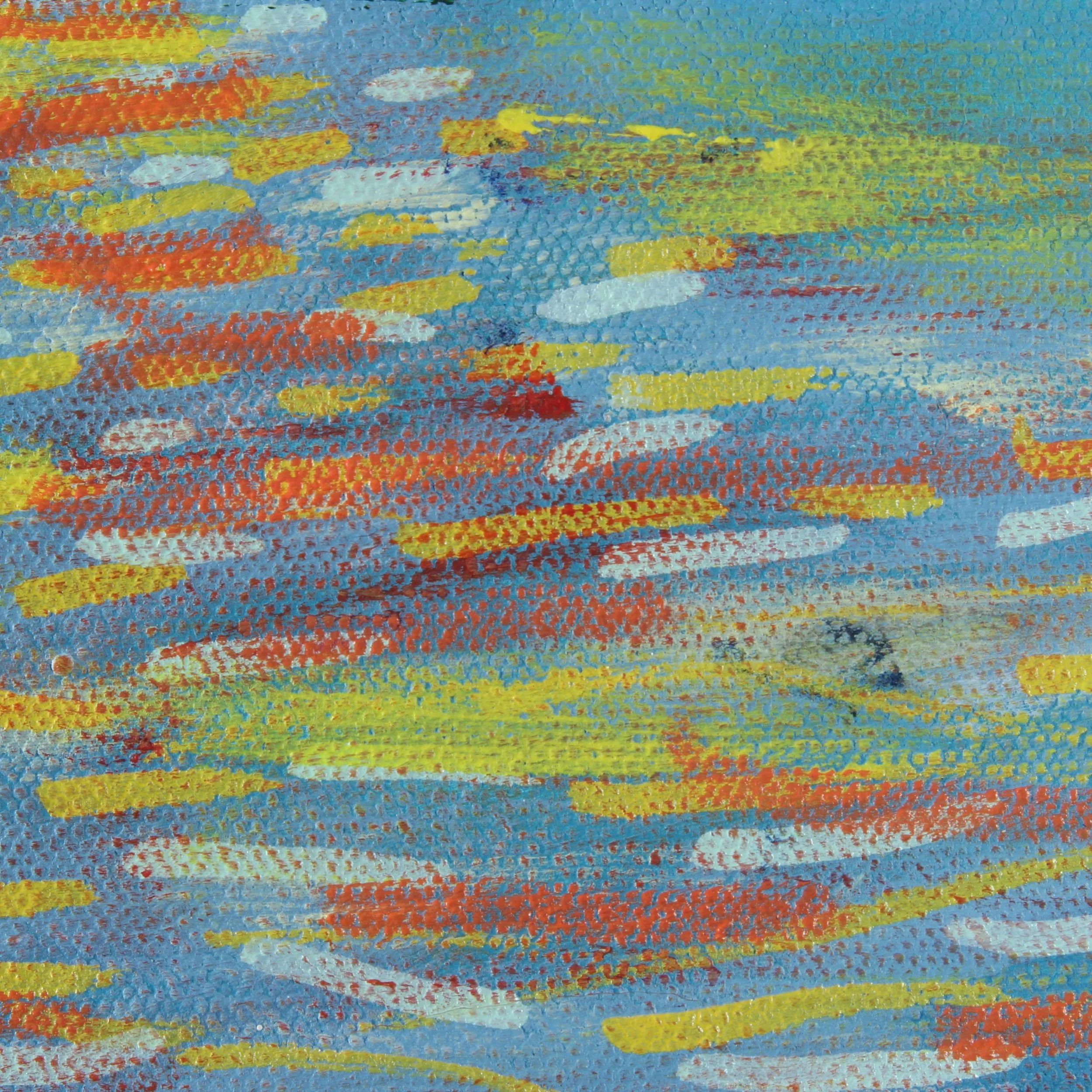 A vision born of stillness and vibration. Here, the sky is not above, it is within. Clouds are not drifting masses but meditative forms, echoing prayers in the wind. The sun does not shine; it contemplates. It watches over a lake that refracts not the world, but the self transformed. The mountains stand as ancient sentinels, silent but alive with inner current. The ground is more than earth, it is memory made visible, emotion woven into contour. The brushwork, layered and alive, evokes a space where mysticism meets matter. This is not a landscape it is an elevation of consciousness. A spiritual cartography. A Tibet not found on any map, but floating quietly in the sky of the mind.